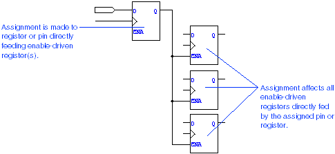 | 2 | Single-point assignment to any register or pin. | All enable-driven registers directly fed by the assigned register or pin. |