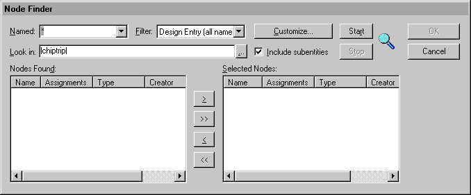 Named Filter Customize hierarchy field hierarchy Include Subentities start stop OK cancel Nodes Found name assignments type creator copy node copy all nodes remove remove all name assignments type creator Nodes Found Selected Nodes Selected Nodes