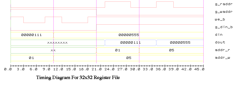 Register files are generally fast RAMS with multiple read and write ports. In Memory Builder,to build a register file you need to specify two parameters for the size of the register file, word (the number of the words) and bpw(bits per word). The assembled register file layout has following terminals.