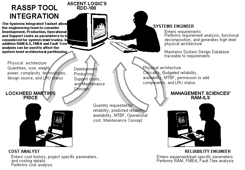 The RASSP concurrent engineering environment consists of ALC's RDD-100, PRICE System's cost estimating tools and MSI's RAM-ILS toolset,